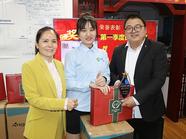 雪萊糧倉對2023年第一季度先進個人進行了表彰,并發(fā)放了獎杯和獎品,鼓舞全員開拓創(chuàng)新、銳意進取。